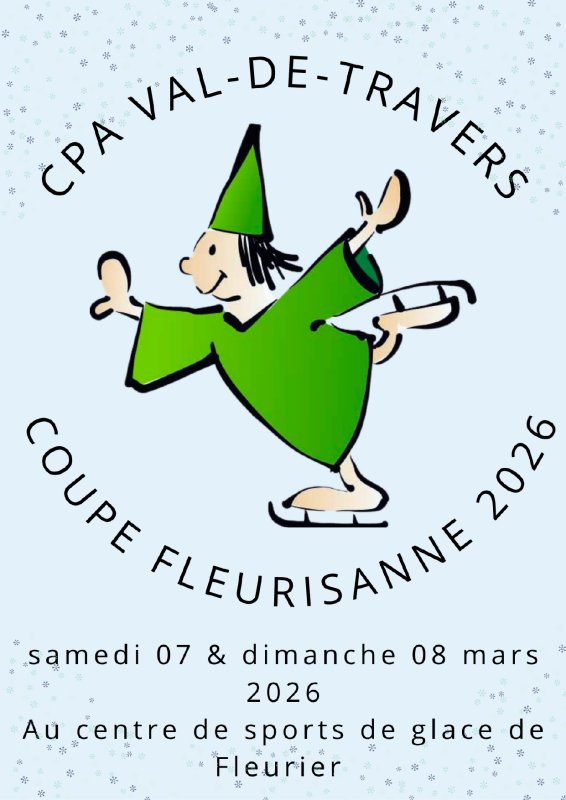 Le club de patinage artistique du Val-de-Travers se réjouis de vous retouvez les samedi 7 Mars et dimanche 8 Mars 2026 pour sa 5ème coupe Fleurisanne